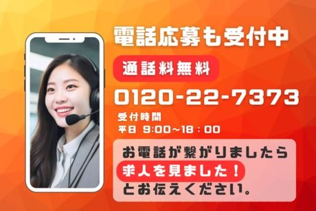 選考プロセス 面接(約30分) ※ご希望に合わせて電話面接もOK! ↓ 工場見学(約1時間) 実際に働いて頂く職場を自分の目で確認! ※工場最寄り駅から送迎、もしくは現地集合 ↓ 入社手続き(約1時間) 書類記入や入社前教育を行います ↓ ★入社★ 最短で1~1.5週間で入社が可能です。 入社日の調整も可能!面接時にご相談ください♪ 【問合せ先について】 問合せ先:0120-227-373 【お電話での応募はこちら】 0120-22-7373 応募受付センター (受付時間:平日9時~18時) 求人番号:ta-9266047 応募方法 応募するボタンをクリック ↓ 3営業日以内に弊社からメッセージまたは電話にて ご連絡をさせて頂きます。 メッセージのチェックをお忘れなく(*^^)v ※応募多数の場合は書類選考の可能性あり