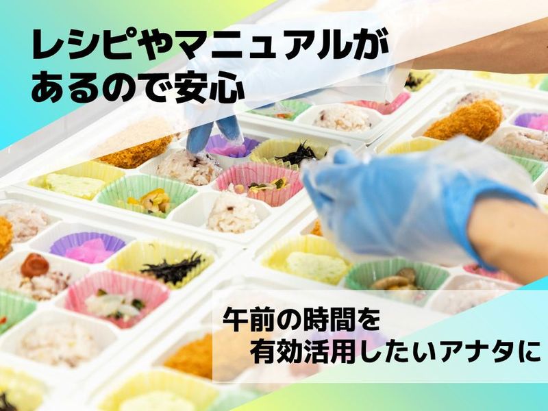 仕事内容 ~~~~~◎おすすめポイント◎~~~~ ✅扶養内勤務・Wワーク歓迎! ✅お子様の発熱等急なお休みにも対応します♪ ✅5:30~9:00や9:00~14:00等勤務時間は選べる! ✅「家事の合間に」 「他の仕事とWワークで」 「長く働ける場所を探している」 などを叶えて楽しく稼ぎましょう♪ ✅家庭、プライベートとも両立ができる ✅基本土日休み! <仕事内容> 手作り弁当の簡単な調理、盛り付けを お願いします。 ★管理栄養士が監修した献立メニューと マニュアルにそって調理、盛り付ける だけの簡単な作業です! 料理が得意、日常的にお料理を している方なら、すぐに慣れて いただけます。未経験の方も 先輩が丁寧にフォローしますので 無理なく始められますよ! わからないことは何でも 聞いてくださいね♪ ★急なお休み対応します! お子様の体調不良やご家庭のイベントなど 臨機応変に対応いたします◎ 気軽にご相談くださいね! 【宅配弁当あじさいについて】 「就労継続支援A型事業所」内で、 全国展開中の彩り豊かな 弁当ショップ「宅配弁当あじさい」 2024年9月にOPEN以来地域の皆様を中心に 利用いただいております。 季節の食材を活かした、 女性に人気のヘルシー弁当や ボリューム満点のお弁当を提供します。 笑顔溢れる活気ある職場を一緒に 作り上げていきませんか? 未経験の方でも安心して始められるよう フォロー体制もバッチリ整えています! ぜひお気軽にご応募ください♪ ・事業内容:宅配弁当の製造・販売 ・雇用形態:アルバイト・パート 募集時間 5:30~14:00 5:30〜9:00や9:00~14:00等の勤務も可能!