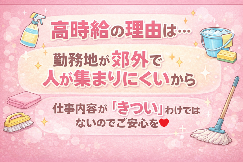 仕事内容 ⭐ 時給1500円!短時間で効率バツグン ⭐ 週2~3日、午前中だけでムリなく ⭐ 60代のスタッフも多数活躍中! 御殿場市印野にある食品工場の 事務所・更衣室・休憩所・お手洗いなど 共用スペースのお掃除ワークです。 ○床の掃除・ゴミ回収 ○トイレや水回りの清掃 ○備品の補充 など ✅特別な機械や技術は必要ありません。 普段の家事経験をそのまま活かせます♪ ✅週2~3日➡月換算10日・30時間程度の 勤務をお願いします! ――――――――――――――――*。・++ 【ここがポイント】 時給が高めの理由は、勤務地が 郊外で人が集まりにくいため。 仕事内容が「きつい」「難しい」わけでは ありませんので、ご安心ください! ⭐ 未経験OK/家事の延長でできる◎ ⭐ 接客ナシ!1人で黙々と作業できます ――――――――――――――――*。・++ 【こんな方に向いています】 ○家事の延長でできる仕事を探している ○年金+αの収入がほしい ○短時間・少日数で体にムリなく働きたい ○人と話すより、1人で黙々と作業したい ――――――――――――――――*。・++ 「質問だけ」「応募前の相談だけ」でも 大歓迎です✨ お気軽にご連絡ください。 ▶電話番号:055-988-0411 ――――――――――――――――*。・++