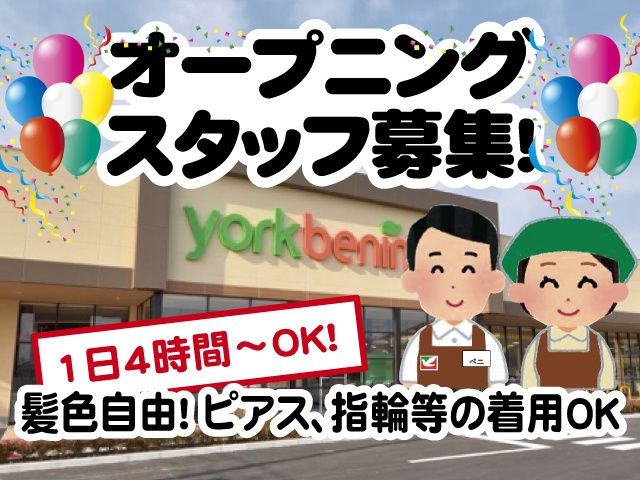 仕事内容 今春オープン予定の総合スーパー ヨークベニマル ひたちなか馬渡店(仮称) オープニングスタッフの募集です! オープンまでは近隣店舗での研修が ありますので、安心してオープン初日を 迎えることができます。 みんな未経験からスタート! 20代、30代、40代、50代 子育てがひと段落した主婦(夫)、 主婦パートさん、フリーターさん、 若い世代から中高年世代まで 幅広い層の方が活躍されております! ご家庭の都合などもスタッフ皆で 協力しながら調整しております 家庭との両立もできる職場です! (ベーカリー部門のおしごとについて) ヘルパースタッフ 食パン、調理パン、菓子パン、 ドーナツ、ピザなどの成形、焼き上げ、 袋詰め、値付け、陳列などをお願いします。 ・髪色自由!ピアス、指輪等の着用OK! 働くうえで染め直しの必要もありません! あなたらしいスタイルで働けます! ※安全・衛生面の観点で一定のルールあり。 ・研修制度あり 未経験でもしっかりサポートいたします! ・休日/シフト制、週契約日数による 月末に翌月のシフトを決めます 学校行事や病院等、家庭の都合があれば 事前に申請可能です! ・マイカー/車通勤可 自転車やバイク、公共交通機関での通勤もOK! (応募方法について) WEB応募よりエントリーください 24時間受付中です WEB応募後は追って面接日をご案内いたします。 お電話でのお仕事内容や、 採用に関するお問い合わせもお気軽に! TEL.0120-889-409