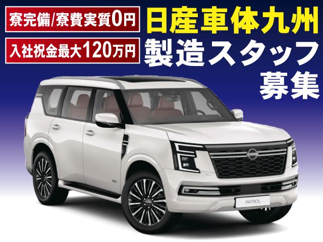 仕事内容 トータル100名大募集! 日産車体九州でのお仕事! 転勤者/赴任者のサポート制度あり! 入社祝い金が最大120万円! きれいな寮(寮費無料)をご用意してお待ちしております! 日払いあり 現在「男性活躍中」の業務になります。 40代までの方が活躍中! 【ポイント】 ・経験不問、工場ワークデビューでも大丈夫 ・月収46万円以上可、年収569万円 ・住宅支援で全国から応募者多数! ・寮完備!寮費実質0円、即入寮可能 ・入社祝い金が最大120万円 ※当社規定あり ・土日休み、年間休日123日、新天地でプライベートも充実 【仕事内容】 自動車工場でのライン作業となります。 ・ドアやボンネットの取付作業 ・塗装作業の補助(クリーンルーム内作業です) ・部品の機械装着作業 ・完成車の最終チェック・仕上げ その他付随する軽作業や清掃などになります。 ロボットや補助装置があるので、体の負担も少なく、 長く続けやすい業務内容になります。 (製造車種) ・ELGRAND ・CARAVAN ・QX80 ・PATROL ・ARMADA といった人気車種を製造しております。 そのため、九州工場の生産効率は非常に高く、 日産自動車全体で見てもトップクラスです。 【赴任手当5万円支給・入寮対応のご案内】 遠方からの引越しを伴ってご就業される方のため、 赴任時の交通費も支給致します。 また、赴任後の足として、自転車貸出もございます。 ▼家具のレンタルサポートもあり これまで寮生活をしていて、 暮らしに必要な家具をお持ちでない方も安心! 当社でレンタルサポートも行なっています。 あなたの新生活をしっかりサポートさせていただいております。 ▼寮完備/寮費無料 入寮しての働き方も可能です。 寮費無料!家電付ワンルーム寮を利用できます。 即入寮可能です! 新たな生活を気持ちよくスタートしていただけるよう、 比較的きれいな寮を用意しています。 実際に働くか決める前に、 寮の最新情報もご覧いただいております。 新たなライフスタイルを少しでも 快適に過ごせるよう、サポートしております。 【福岡県京都郡苅田町ってどんなところ?】 苅田町は、北九州市と行橋市の間に位置する 人口約3万7千人、面積49.58平方キロメートルの町です。 東は周防灘に面して、国際貿易港・苅田港と 広大な臨海工業地帯が広がっています。 また苅田港沖には北九州空港があり、 苅田港、東九州自動車道苅田北九州空港インターチェンジと併せ、 陸・海・空の交通結節拠点となっています。 一方、西はカルスト台地平尾台に連なり、 国の天然記念物青龍窟や広谷湿原など豊かな自然があります。 市街地には邪馬台国伝説にまつわる 三角縁神獣鏡を出土した国指定の石塚山古墳や 御所山古墳をはじめとした多くの古墳や遺跡も 点在しています。 祭の歴史も古く、 修験道の祭・等覚寺松会(国指定重要無形民俗文化財)は千年、 苅田山笠(県指定無形民俗文化財)は五百年の伝統があります。 こうした自然・文化・歴史や産業が調和し、 充実した交通インフラがもたらすネットワークを生かして、 人・もの・情報・文化が交流するまちづくりを進めています。 https://www.town.kanda.lg.jp/site/syokai/ 苅田町のHPより 【苅田町の拠点駅 苅田駅までのアクセス目安】 ・JR博多駅より 山陽新幹線+日豊本線で約50分 ・JR小倉駅より 日豊本線で約30分 ・JR新下関駅より 山陽新幹線+日豊本線で約50分 ・JR新山口駅より 山陽新幹線+日豊本線で約60分 ・JR広島駅より 山陽新幹線+日豊本線で約90分 ・JR大分駅より 日豊本線で約80分 ・JR鹿児島中央駅より 九州新幹線+日豊本線で約3時間 【契約期間】 長期(3ヶ月更新) ▼当社より就業いただくメリット 【社会保険加入できます】 就業条件を満たす方には社会保険に加入して頂きます。 【有給休暇を取得できます】 6ヶ月間の勤務実績があれば有給休暇が付与されます。 【急な出費でお金が必要な時も安心】 日払い制度、週払い制度、前払い制度がございます。 詳しくは担当者へお問い合わせください。 【就業先で困ったことが起きた時も大丈夫】 担当のコンサルタントに気軽に相談できます。 ▼応募方法について WEB応募よりエントリーをお願い致します。 その後、当社より連絡させていただき、面接の流れとなります。 面接は、 ・来社面接 ・オンライン面接 ・電話面接 ・現地面接 のいずれかにて対応致します。 面接に伴って、履歴書のご用意は不要です。 登録の際には、「氏名」と「生年月日」が確認とれるものをお持ちください。 例:運転免許証、パスポート、健康保険証、住民票等 面接の際、職場見学も可能です。 仕事内容に関するご相談につきましては、 0120-470-724までご連絡ください。 現在開設準備中につき、 連絡窓口は、株式会社ニチユウ 本社 となります。