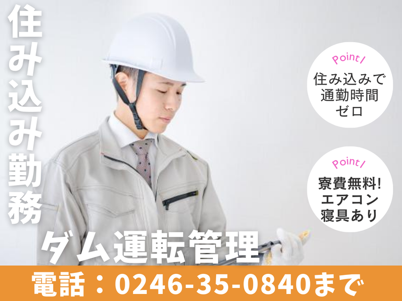 仕事内容 ✨未経験でも安心✨ \住み込み勤務!生活サポート充実/ 福井足羽川ダムでの運転管理室 スタッフを大募集しています! ◆安心ポイント◆ ⏩未経験から始めた方が多数活躍 ⏩研修あり!基礎から丁寧に学べる ⏩先輩スタッフのサポート充実 ⏩重たい作業ナシ!体への負担少なめ ⏩寮完備(寝具・エアコン付き/無料) 20代~50代まで、幅広い世代が 全国から集まり活躍中です! ───────────────── 【仕事内容】 福井足羽川ダムの運転管理室にて 監視や点検業務をお願いします。 <具体的には…> ✅ダムの水位・流量の監視 ✅設備の操作や点検 ✅記録・報告業務 ✅緊急時の対応・連携補助 作業は先輩がしっかりフォロー! 未経験でも安心してスタートでき、 長く続けやすい環境です。