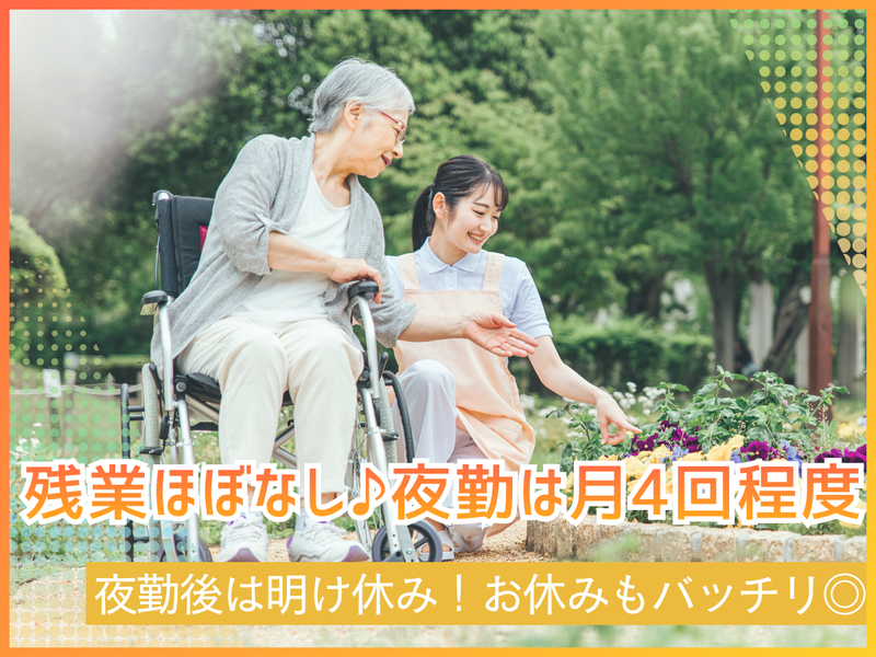 仕事内容 / 【まずは職場体験・見学もOK✋】 現場スタッフが同行して 体験・見学(2時間ほど)も可能! \ ▽“ほったらかし”にしない♪▽ ✮ だから[定着率も抜群!]✮ |•'-'•)੭【未経験者も活躍中】 ・:・:・:・:・:・:・:・:・:・:・:・:・:・:・:・ ▼【安心・安定して働ける職場】 ✅24時間看護師さん常駐 ✅週休2日or3日の選択可能 ✅残業ほどんとなし ✅仮眠しやすい夜勤(月4回程) ✅夏・冬に特別休暇あり ▼【スキルアップできる環境】 ⏩資格取得支援制度あり ▶【ブランクのある方も徹底応援】◀ [70歳定年制]なので 「介護職にブランクがある…」 「まだまだ働きたいのだけど…」 そんなあなたでも大丈夫です!! ・:・:・:・:・:・:・:・:・:・:・:・:・:・:・:・:・:・ 【仕事内容】 介護施設にご入居されている ご利用者さまの日常を支える、 訪問介護業務を担当していただきます。 <具体的には> ■朝の起床や夜の就寝時のお手伝い ■食事の準備や介助 ■入浴のサポート ■トイレの誘導やオムツ交換などのケア ■お部屋のお掃除やお洗濯などの生活支援 ■車イスへの移乗や外出の付き添い ■季節ごとのイベントのサポート などをお任せします。 <居室数・定員> 37室・37名 <施設設備> 食堂1ヶ所、トイレ4ヶ所 浴室3ヶ所、エレベーター1ヶ所 \\ // // ▽ちゃんと見てフォロー! ▽ちゃんと見て評価! // // \\ ▌✨慣れるまで先輩が同行!  ̄ ̄ ̄ ̄ ̄ ̄ ̄ ̄ ̄ ̄ ̄ ̄ ̄ ̄ ̄ 新人さんを一人で業務に あたらせることはありません! また重度介助は必ず複数名で対応し、 介護補助器具も積極的に使用しています! ▌✨朝礼(申し送り)を丁寧に!  ̄ ̄ ̄ ̄ ̄ ̄ ̄ ̄ ̄ ̄ ̄ ̄ ̄ ̄ ̄ 看護師さんも含めた 朝礼の申し送りは 些細なことも言いやすく 細やかなことも共有! 「これ報告してもいいかな?」 と1人で抱える心配はなし! チームで助け合っています◎ ▌✨頑張りもしっかり評価!  ̄ ̄ ̄ ̄ ̄ ̄ ̄ ̄ ̄ ̄ ̄ ̄ ̄ ̄ ̄ 社歴に関係なく半年で リーダーに昇格する方も! ▛▝▝▝▝▝▝▝▝▝▝ ▜ [こんな楽しみも♪] ▙ ▖▖▖▖▖▖▖▖▖▖▟ ■書道教室で習字に挑戦! ■お祭り屋台を施設で再現! ■毎月パンの日は特別なお食事! レクリエーションも充実◎