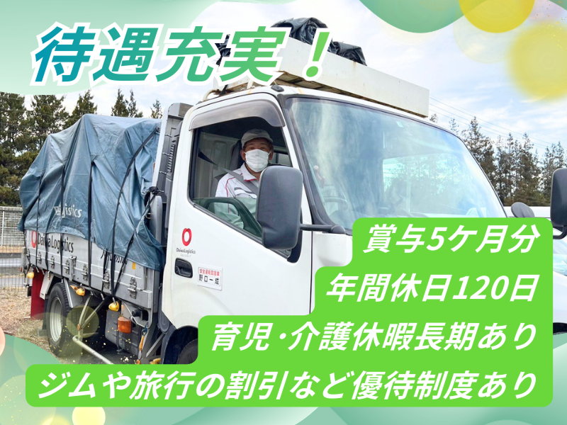 アピールポイント: \ 大和物流で働く3つの魅力 / ── 1. 仕事が年間通して安定 ── 大和ハウスグループだから業務量が安定。 固定残業なし、毎日自宅に帰れる環境です。 # 有給が取りやすい雰囲気 # 育児休暇(子が小学校3年生まで取得可) # 介護休暇(最長180日) ── 2. 安全運転が給与にしっかり還元 ── 賞与に加え、各種手当が充実。 人生の節目もサポートする制度が整っています。 # 結婚祝い金・出産祝い金あり # 安全評価手当(無事故で支給) # 家族手当(子1人につき5,000円) ── 3. キャリアの選択肢が広い ── ドライバーとして定年まで活躍するもよし、 管理事務や構内作業への転換も可能です。 グループ内の異動でキャリアアップもOK! # 働きやすい職場認証制度「二つ星」の認証登録 ━━━━━━━━━━━━━━━━━━