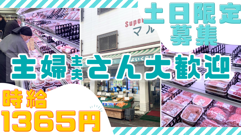 仕事内容 【土日のみ】週末だけの特別シフト♪ 経験ゼロOK‼特別な資格も経験も 必要ないのに超高時給1365円以上!! // 週末バイトで賢く稼ぐ! こんな好条件のバイト、見逃せない! \\ 地元の方ならスグ分かるはず! 地域で愛されるスーパーでスタッフを 増員募集中です*。٩(ˊᗜˋ*)و*。 さらに!働きやすさに自信あり◎ ✔土日のみの週末限定募集  ̄ ̄ ̄ ̄ ̄ ̄ ̄ ̄ ̄ ̄ ̄ ✔週1日(土日いずれか)から勤務OK  ̄ ̄ ̄ ̄ ̄ ̄ ̄ ̄ ̄ ̄ ̄ ̄ ̄ ̄ ̄ ✔特別な資格も経験も一切必要なし!  ̄ ̄ ̄ ̄ ̄ ̄ ̄ ̄ ̄ ̄ ̄ ̄ ̄ ̄ ̄ 副業先と両立しながら週末は高時給で 賢く稼ぐ! フリーターさんやWワーカーさんが 多数活躍中です◎ ―・<精肉スーパー内店舗スタッフ>・― ・店舗内作業全般 ・商品の値付け ・品出し ・店舗内清掃 などをお任せします! 経験がない方も大歓迎です◎ 初めてのバイトの学生さんから日本語で コミュニケーションが取れる外国人、 中高年まで年齢も性別も経験も問わず 様々な方々が働いている店舗です! 丁寧に仕事を教えるので、 どなたでも活躍してもらえるはず!! ◤ ̄ ̄ ̄ ̄☎⋆.✩ ̄ ̄ ̄◥ お電話でのご応募も歓迎 ℡/03-5670-6500 ◣__________◢ ―・―・―・―・―・―・―・―・―・―・―・―・― \ 職場見学もOK! / 実際に働くお店がどんなところなのか 気になりますよね!! 買い物にいらして下さったことがある方も そうでない方も安心しお仕事を スタートしてもらえるようにご用意◎ Q.体力や資格・経験がなくても大丈夫?  ̄V ̄ ̄ ̄ ̄ ̄ ̄ ̄ ̄ ̄ ̄ ̄ ̄ ̄ ̄ ̄ ▶力仕事はありません! 取り扱うのもお肉なので、軽量◎ 知識や経験がなくても「意欲」「人柄」 重視の採用なので、ご安心くださいね! Q.覚えることはたくさんある?  ̄V ̄ ̄ ̄ ̄ ̄ ̄ ̄ ̄ ̄ ̄ ̄ ▶最初は丁寧にイチからご説明しますし、 簡単×シンプル作業なので、 スグに覚えられるはずです!! Q.副業先のシフトと調整したい!  ̄V ̄ ̄ ̄ ̄ ̄ ̄ ̄ ̄ ̄ ̄ ̄ ̄ ̄ ▶事前に相談頂ければ柔軟に対応します! 土日いずれか週1日の勤務も可能なので シフトの融通は抜群です! まずはお気軽にご応募ください♪