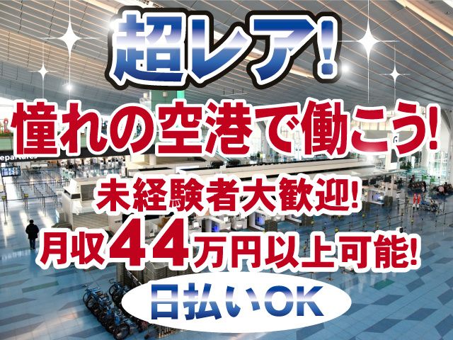 【保険制度】 雇用保険、労災保険、健康保険、厚生年金 待遇 ・社会保険完備 ・日払い、週払い対応 ・作業着無償貸与 ・交通費全額支給(会社規定有) ・公共の交通機関がない時間についてはタクシー配車有 ・休憩室有 ・従業員用シャワー有 ・空港内優待有 ・自社社員登用