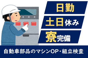 自動車部品のマシンオペレータ及び組立検査 日勤|日勤|立ち作業|寮完備