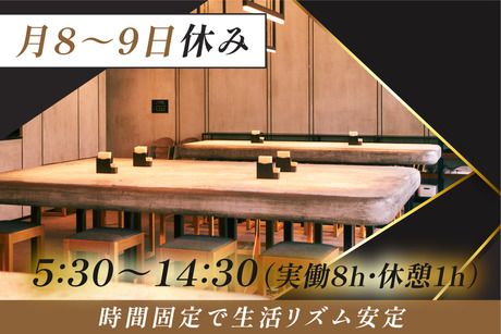 勤務時間 実働時間:8時間/日 平均勤務日数:1ヶ月あたり20日~22日 前月16日頃までに希望休を申告 5:30~14:30(実働8h・休憩h) ※お客様の状況により、 残業が発生することがあります