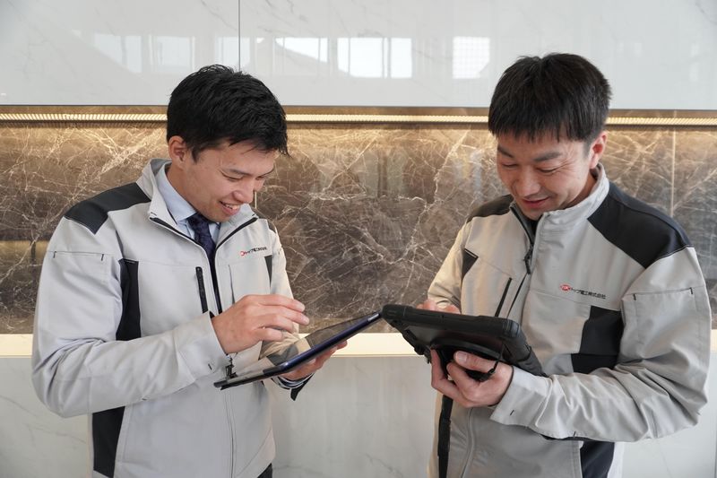 職場環境 「今は若い世代に合わせるべきかなって」by社長 今は穏やかな子が多いから、上の世代が今の子たちの流れに合わせるべきだと思うんですよ。 図面共有はタブレットで行うなど、便利なものはとにかく活用!という方向にシフトしています。