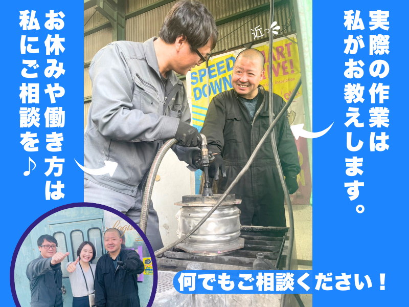求めている人材 ■学歴不問 ■無資格OK ■未経験者歓迎 ■機械いじりが好きな方、大歓迎! ■車が好きな方 ■20代~40代活躍中 ■男女ともに活躍中 ※溶接の資格や経験がある方は 活かすことも可能◎ <こんな方におすすめ> ・明るく元気に挨拶できる方 ・チームワークを大切にできる方 ・新しいことにチャレンジしたい方 ・自動車やバイクのメンテナンスに興味がある方 ・ディーゼル車に興味がある方 ・コツコツ作業や洗浄作業が得意な方