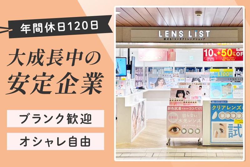 仕事内容 \\ 株式会社Lcodeとは // ■コンタクトレンズ商品の 企画・開発・製造・販売を 一括して行うメーカー ■2007年11月に株式会社El Dorado設立後 販売部門を株式会社Lcodeとして分割し、 組織変遷を経て 現在のLcodeとなりました! ■「candy magic」「ReVIA」など、 人気モデルを起用した 自社ブランドを多数展開中 ■現在はアジアを中心に、海外展開も! ━━━━━━━━━━━━…‥・ 人気カラコンSHOP『LENS LiST』 ・‥…━━━━━━━━━━━━ 自社で開発したブルーライトカット機能を 持ったコンタクトや クリア&カラーコンタクトを販売する メーカー直営のコンタクトレンズ専門店☆彡 ≪ お仕事内容 ≫ ・接客 ・顧客管理 ・担当店舗の売上管理 ⇒売上報告用の集計など簡単なデータ作成 ・在庫発注、管理 ・アルバイトスタッフのシフト管理 ・マネジメント ・売上確認会議等への出席 etc... 店長候補として店舗運営マネジメント業務を お任せします! \こんなこともできちゃいます/ 簡単な手書き販促POPなどの作成もお任せ! ただマニュアルに従うだけでなく 自分で店舗を彩れるので やりがいを感じることができます☆ こんなことにも挑戦したい!! こういう店舗にしたい! そんなあなたの思いを応援します(*^^*) ∽∽∽∽∽∽∽∽∽∽∽∽∽∽∽∽∽∽∽ ≪ 入社後の研修 ≫ ■基本的な業務内容 ■実店舗OPENの経緯 ■当社の想い、ビジョン etc… ≪ 今後のキャリア ≫ 入社1年後には… ” 高度医療機器販売管理責任者資格 " を 取得して頂きます! \\ 取り扱いコンタクト // ✅candy magic ✅ReVIA ✅SIE ✅FruFru ✅TeAmo etc… \\ イメージモデル // ✅鈴木愛理 ✅ローラ ✅TWICE MOMO ✅FRUITSZIPPER etc… 【 おすすめポイント7 】  ̄ ̄ ̄ ̄ ̄ ̄ ̄ ̄ ̄ ̄ ̄ ̄ ◆20〜40代活躍中! 週休⼆⽇制‧⻑期休暇制度など たくさんの休暇制度があります! 家庭や⾃分⾃⾝に充てた時間の確保可能◎ 家族との時間を確保するための転職も⼤歓迎♪ ◆お好きなカラコンを無料でGET ! あの【candy magic】や【ReVIA】などの ⼈気のカラコンの一部を無料で支給!! さらに…! 社割で新商品や⼈気商品も お得に⼿に⼊ります◎ ◆社員旅⾏もスタッフから⼤⼈気! 過去には、国内は沖縄、 国外では、LA・ハワイ・グアムなど! ⼀緒に働くスタッフ同⼠だからこそ、 お仕事を超えて交流を図れる ⼤⼈気のイベント✨ ◆店舗×ECで事業に関われる 本社と連携しているため、 ECサイトの情報も共有! お客様がどのように リピーターになっていくのかまで 知ることができます。 数字やデータをもとに、 お店づくりや売上アップに関われる環境です! ◆年1回の昇給で収⼊もUP! 安定して稼げます! 経験を考慮し、 ⽉給は28万円~スタート! 昇給は年1回!確実に毎年給与がUP◎ ◆オシャレALL自由! 髪型・ネイル・ピアスなど ぜんぶOK!! あなたの個性を活かして働けます♪ ◆駅チカ! 駅近くにあるので 通勤が便利です♪ 駅内にあるので雨の日も 濡れずに通勤できます! 【 店舗一覧 】  ̄ ̄ ̄ ̄ ̄ ̄ ̄ ・LENSLiST 渋谷店 ・LENSLiST 心斎橋店 ・LENSLiST ekimoなんば店 ・LENSLiST 梅田店