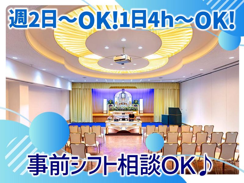 仕事内容 \自分のペースで働ける♪主婦さん・Wワークの方活躍中!/ ・育てがひと段落された30~40歳の女性が活躍中! ・家事や育児の合間、副業・Wワークとして勤務OK! ・週2~3日でもレギュラー勤務でもOK! ・時給アップ!時給1260円~1420円の高時給! 事前にシフトで入れない日を申告するだけ♪ あなたの希望に合わせた働き方が可能です◎ 和歌山エリアのセレモ平安・やわらぎホールでのお仕事です。 ‐‐‐‐‐‐‐‐‐‐‐‐‐‐‐‐ 【セレモニーアシスタント大募集!】 和歌山エリアのセレモ平安・やわらぎホールでのお仕事です。 会館同士遠くても車で30分程度しか離れていないので通いやすい! 「出来れば自宅から車で30分圏内が良いなど」希望勤務先もしっかり考慮!! <具体的には> ・参列者様への案内、葬儀担当者のサポート ・お食事の配膳 ・お皿やグラスの片付け 等 普段聞き馴染みのないお仕事かもしれませんが、難しいことはありません。 気さくで話しやすいスタッフばかりなので、分からないことがあっても、スグに丁寧に教えてくれますよ! 経験がない方も安心です。 <お仕事までの流れ> (1) 応募&登録 (2) 勤務出来ない日の申請 (3) 前日または当日にお仕事のご案内! →働ける際は出勤! 「この日は夜(朝)から」「今月は少なめで」等も自由に調整可能! ご都合に合わせて無理なく続けられます。 ‐‐‐‐‐‐‐‐‐‐‐‐‐‐‐‐ ✅主婦さん活躍中!人気なワケは> (1)登録制 働ける日・働けない日を申請するだけ! 週4~5日でコンスタントにお仕事するのも良し、 週2~3日でマイペースに勤務するのもOK! (2)先輩スタッフとマンツーマンでお仕事を習得 職種だけ聞くと難しく思われるかもしれませんが、 ・参列者様への案内、葬儀担当者のサポート ・お食事の配膳 など 未経験の方もスグに活躍できます。 (3)豊富な勤務地 日によって、エリア内で勤務地が異なりますが、ご自宅近くなど、できるだけ考慮します。