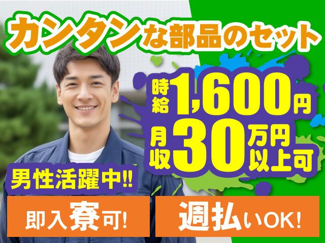 太田市/土日休み♪自動車部品のセット★未経験歓迎!大量増員!男性活躍中!月収30万円以上可能