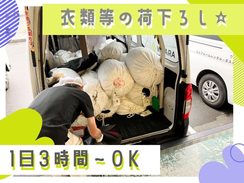 仕事内容 \倉庫内での荷下ろしスタッフ★男性活躍中◎/ ユニフォーム(制服)のレンタルを行う会社です。 「この制服、見たことある!」なんて企業様もあるかも♪ ▼主な業務 ・洗濯工場から入荷したユニフォームの荷下ろし ・トラックから回収品の荷下ろし ・移動用カートへの積み込み ・洗濯前ユニフォームの仕分け・検品作業 体を動かすお仕事なので、 アクティブに働きたい方にピッタリ! ※重たい荷物を扱う作業があります。 10kgから20kg 程度の荷物を扱いますので、体力に自信のある方歓迎 【働きやすい環境◎】 ・冷暖房完備で季節問わず快適! ・熱中症対策も万全! →塩分タブレット&ひんやりタオル支給 ・冷水器・冷蔵庫も自由に利用OK 【ここがポイント♪】 ■Point.1 ミニボーナス&昇給ありでしっかり稼げる!  ̄ ̄ ̄ ̄ ̄ ̄ ̄ ̄ ̄ ̄ ̄ ̄ ̄ ̄ ̄ ̄ ̄ ̄ ̄ ̄ ̄ ̄ ̄ ̄ パートさんにも嬉しい【ミニボーナス】あり♪ さらに、頑張りをしっかり評価してくれる【昇給制度】もあります。 日々の努力がしっかりカタチになるから、 「やる気が続く!」とスタッフにも好評です◎ ―――――――――― ■Point.2 働きやすさもバッチリ♪  ̄ ̄ ̄ ̄ ̄ ̄ ̄ ̄ ̄ ̄ ̄ ̄ ̄ ̄ ̄ ̄ 制服・靴・手袋はすべて【会社から貸与】! 「ここなら長く続けたい!」という声も多く、 働きやすさにこだわった環境が自慢です☆