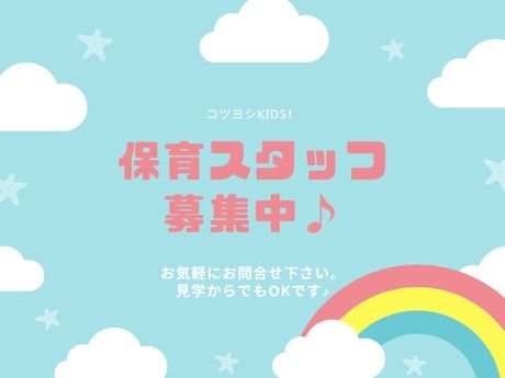 仕事内容 【仕事内容】 \今すぐの入職も、4月スタートも歓迎しています◎/ 子ども一人ひとりとゆっくり向き合える、小規模保育園でのお仕事です♪ ・落ち着いた雰囲気で丁寧な保育が可能 ・休みが取りやすく、働きやすい職場環境 ・ネイル・髪色OK♪今どきの職場 *********************************** ◎主な仕事内容◎ ・保育補助(おむつ替え・ミルク、食事、排泄・着替えなど) ・お散歩の付き添い ・給食、おやつ後の片付け清掃 ・担任のサポート など *安心ポイント* ・ブランクがある方も丁寧にサポートします♪ ・経験が浅くても先輩保育士がしっかりフォローします♪ ・残業なし&持ち帰り仕事ゼロを徹底♪ 自社のHPもぜひご覧ください! コツヨシKids https://kotuyosi-kids.com 【アピールポイント】 ◎家庭と両立しやすい働き方ができます◎ ・残業はありません&持ち帰りの仕事もなし♪ ・決まった時間でお仕事が終わるので、退勤後からはご家庭の時間に。無理なく続けられる環境です♪ ◎久しぶりのお仕事復帰でも大丈夫◎ ・子育てがひと段落した方や、保育現場から離れていた方も多数活躍中♪丁寧なサポート体制が整っています♪ ◎人間関係の良さが働きやすさにつながっています◎ ・「困ったときはお互いさま」の気持ちで、声をかけ合えるあたたかな雰囲気です♪ ◎有休取得率100%&柔軟なシフト相談OK◎ ・お子さまの急な体調不良や学校行事など、ライフスタイルに合わせて柔軟に対応しています♪ ・シフトの相談もしやすく、お休み希望も通りやすい環境♪お子さんの急なお熱や学校行事なども柔軟に対応しています◎ TikTokにて各園の雰囲気が覗けます♪ @kty_kidsにてチェック♪
