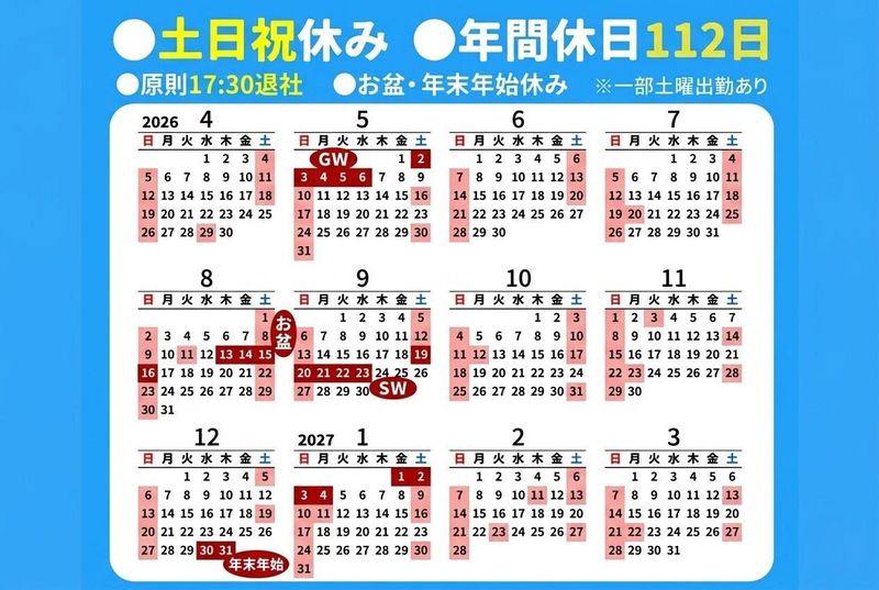 原則17:30退社|土日祝休み|未経験OK
