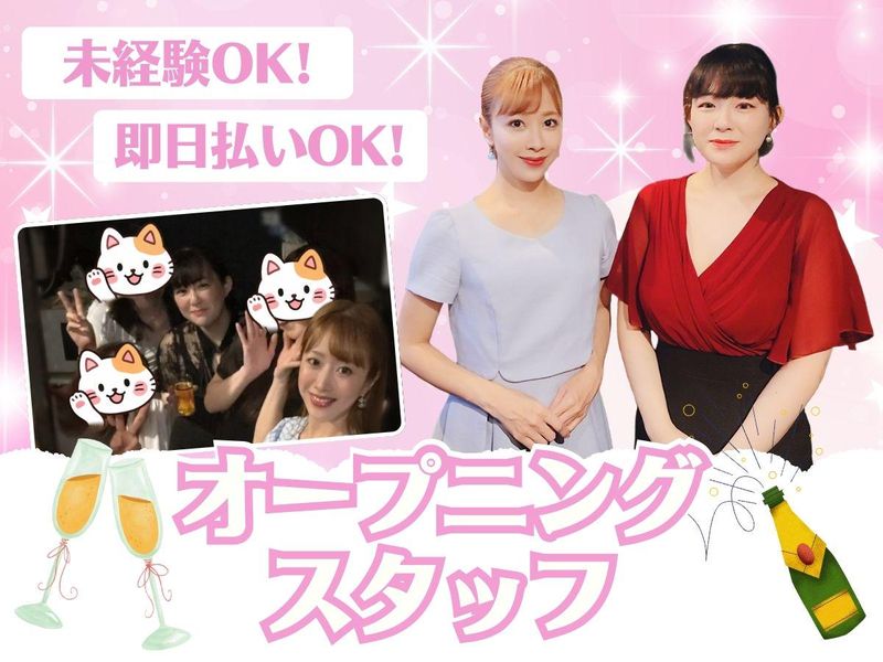 仕事内容 ╒━━━━━━━━━━━━━━━╗ ✨1号店好評につき2号店オープン✨ ✨オープニングスタッフ大募集!✨ ╘━━━━━━━━━━━━━━━╝ ⭐高時給2000円〜3000円 ⭐バック+各種手当あり ⭐週1日・1日3h〜OK ⭐ノルマ・罰金・ビラ配りなし ⭐厳しいルール一切なし♪ ⭐お酒が飲めなくてもOK! ⭐終電までの勤務もOK! ₊⁺✨――――――――――――――✨⁺₊ \20代・30代が中心の明るい職場♪/ 既存の店舗では20代・30代が多く在籍。 同世代の仲間と楽しくスタートしませんか✨ まずは体験入店からでもOK! 思いっきりオシャレしたい方も 自分らしく私服で働けますよ(ᐢ・⩊・ᐢ)❤♪ <仕事内容> ●お客さまのご案内・接客 ●かんたんなドリンクづくり ⏩専門知識は不要! ⏩無理な飲酒ナシ! ⏩ソフトドリンクでの接客もOK! お客さまとの会話を楽しんでください♪ ₊⁺✨――――――――――――――✨⁺₊ <1日の流れ> 18:30|出勤 お店に到着。身だしなみを整えて、 気持ちを切り替えます 18:45|開店準備 店内のチェックやグラスの準備など 落ち着いた空間を整える時間 19:00|オープン 「いらっしゃいませ♪」 笑顔でお客様をお迎えして営業スタート 20:30|接客タイム お仕事にも慣れてきて ドリンク作りや会話を楽しみながら接客 22:15|後半の営業 常連さんや初めてのお客様と ゆったりした雰囲気でおもてなし 24:00|閉店・片付け 店内を整えて業務終了 「今日もおつかれさまでした♪」 ※シフトにより短時間勤務や 終電までの勤務もOKです! ₊⁺✨――――――――――――――✨⁺₊ ╭─────・⭐・・─╮ スナック未経験OK! ╰─・・⭐・─────╯ ✅オープニングにつき同期がいっぱい❗ みんな一斉のスタートだから、 変な気遣いは不要です(*'▽')人('▽'*)。 ✅既存店は20・30代が中心に活躍中❗ 同世代が多いから、 休憩中も趣味や流行りの話で 盛り上がっています♬ ✅きびしいルールやノルマなし❗ お酒が飲めなくても大丈夫ですよ。 ✅ママや先輩が優しくフォロー❗ 夜のお仕事が初めての方も安心! ₊⁺✨――――――――――――――✨⁺₊ ╭────────・⭐・・─╮ 私服でOK!おしゃれ自由♪ ╰─・・⭐・────────╯ ✅私服勤務OK ✅髪色&ネイル&ピアスも自由 ✅可愛いレンタル制服も選べる♪ 学校や仕事帰りに そのままのスタイルで、 自分らしく働けちゃいます♪ ₊⁺✨――――――――――――――✨⁺₊ ╭─────・⭐・・─╮ 理想のシフトが叶う! ╰─・・⭐・─────╯ ✅週1日~OK! テスト期間や本業との 都合に合わせやすいのが魅力♪ ✅22:00以降勤務できる方歓迎 「遅番でガッツリ稼ぎたい!」 そんな方も大歓迎です! ₊⁺✨――――――――――――――✨⁺₊