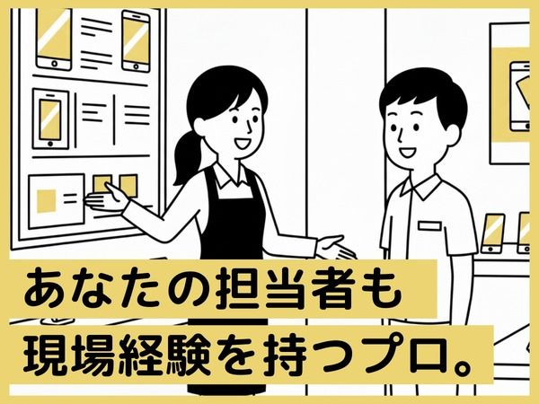 仕事内容 現場を知らない担当者に、何を言っても無駄… そんな風に諦めた経験、ありませんか? ご安心ください。 相談相手となる担当者は、あなたと同じ販売の現場に立ち、同じ悔しさや喜びを経験してきた『元・販売員』。 だから、あなたの「本音」も、 言葉にできない「違和感」も、 手に取るように分かるのです。 分かってもらえないストレスから そろそろ解放されませんか。 - / 経験のあるプロだからできる 3つの約束。 \ 【01】 私たちは 個性 で職場を選びます。  ̄ ̄ ̄ ̄ ̄ ̄ ̄ ̄ ̄ ̄ ̄ ̄ ̄ ̄ ̄ ̄ ̄ 面談で少し話すと、なんとなく分かるんです。 「あ、この方はお話好きだから、賑やかなA店が合いそうだな」とか 「丁寧な雰囲気だから、常連さんが多いB店が心地良いだろうな」とか。 携帯販売の現場を知り尽くした私たちだからこそ出来る らしさ が活きるマッチングを約束します。 【02】 派遣したら終了 では、ありません。  ̄ ̄ ̄ ̄ ̄ ̄ ̄ ̄ ̄ ̄ ̄ ̄ ̄ ̄ ̄ ̄ ̄ 私たちが、より大切にするのは、派遣した後の関係性。用事がなくても、あなたの働くお店には必ず顔を出しに伺います。 現場の悩みは、現場を経験した人間にしか分かりません。だからこそ、私たちは月に1回を目安に、派遣後も欠かさず現場を訪れるようにしています。 【03】 あなたの頑張り、店長より語れます。  ̄ ̄ ̄ ̄ ̄ ̄ ̄ ̄ ̄ ̄ ̄ ̄ ̄ ̄ ̄ ̄ ̄ 「頑張っているのに評価されない…」 そんな悔しい思いはさせません。 私たちは、あなたの活躍をしっかり見て、派遣先の責任者に直接アピール。 あなたの一番の味方として交渉し、時給UPを実現させたいからこそ、お店との強い信頼関係を構築することに注力しています。 - 【仕事内容】 ■家電量販店でのサービス内容のご紹介 ┗各種家電、インターネット回線等 ■購入製品のアフターフォローサービス ■契約業務 など - 今いる場所が、 あなたの全てではありません。 ジブンのまま、輝ける。 そんな働き方を一緒に叶えていきましょう。