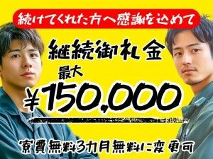 ◆ 選べる豪華入社特典 ◆【髪型・髪色自由・ヒゲOK(規定あり)】個室寮完備で住まいも仕事も安定/正社員登用実績ある当社で安定したキャリアを積んでいこう