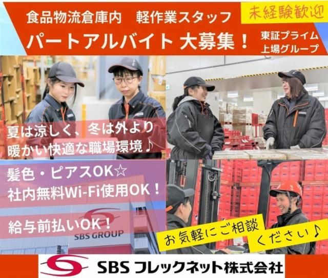 仕事情報 ● 仕事内容 夏は涼しく、冬は外気よりも暖かい快適な職場環境です。スーパーマーケットやコンビニ向けの食品の入出荷や仕分けのお仕事です。牛乳やヨーグルトなどの乳製品やお惣菜やお弁当など、普段の生活に欠かせない身近な商品を取り扱っていただきます。仕分け作業がメインなので、ご自身のペースで作業したい方にお勧めです! 未経験でも簡単お仕事 伝票のバーコードを読み込んで、荷物を種類ごとに仕分けするお仕事のため、間違いにくく初めての方も覚えやすい仕事です。モクモク・コツコツとお仕事したい方におすすめです。未経験者でも安心してお仕事を始められるように、先輩スタッフがやさしくサポートします!すぐにテキパキお仕事できますよ。 職場の雰囲気◎福利厚生◎ 職場内では役職者も含めて全員が「さん」付けで呼びあい、みんなが遠慮なく意見を言い合える環境づくりを心がけています。髪色・ピアス自由です。また、休憩室やロッカーが完備しており、休憩時間は社内無料Wi-Fiを使って快適に休めます♪ 有休休暇のとりやすい環境 ご希望のお休みを取りやすい環境です。希望シフト提出時に、お気軽にご相談ください。お子様の学校行事も参加したい主婦(夫)の方や、プライベートの時間も大切にされたい方、家族と過ごす時間を大切にされたい方におすすめです。プライベートとお仕事のメリハリをつけて、健康的に楽しく働きましょう! SBSフレックネットとは SBSフレックネットがお届けするのは、お客さまの生活に欠かせない食品。会社の強みである輸配送全国ネットと、低温管理ノウハウは、お客さまの安心安全な「食の当たり前」を支えます。東証プライム上場グループで業界トップクラスの品質と実績を持つSBSフレックネットで更なる成長を目指し誇りをもってお仕事しませんか?