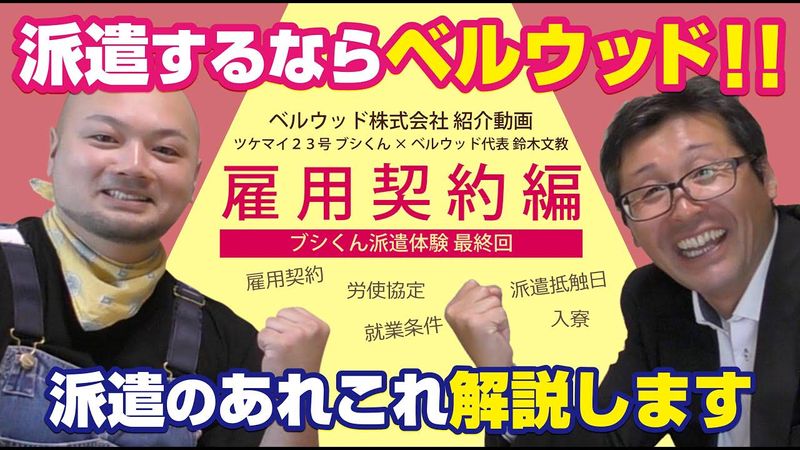選考プロセス ⏩皆さんからの応募確認後、 弊社より面接のご案内のご連絡をいたします ⏩希望の連絡日時や連絡方法(電話・メール等)を お知らせいただけると助かります ⏩出張面接等も柔軟に対応しておりますので お気軽にご相談ください ⏩面接から採用決定までは なるべくお待たせしません(最短即日) ⏩採用決定後、職場の見学をしてもらい 最終の意思決定をお願いします ⏩見学後、雇用契約を行い仕事スタートです ⏩面接から仕事開始まで最短で 3日〜1週間程度とお考えください ⏩入寮希望の方は別途日数を頂きます。 ご相談ください 【登録地】 ベルウッド株式会社 蒲郡本社 所在地:愛知県蒲郡市竹谷町政久33番地 電話番号:0533-69-8768 ベルウッド株式会社 豊田営業所(豊田面接会場) 所在地:愛知県豊田市曙町5-74 サンハイツAKEBONO 209号 電話番号:0565-85-8828