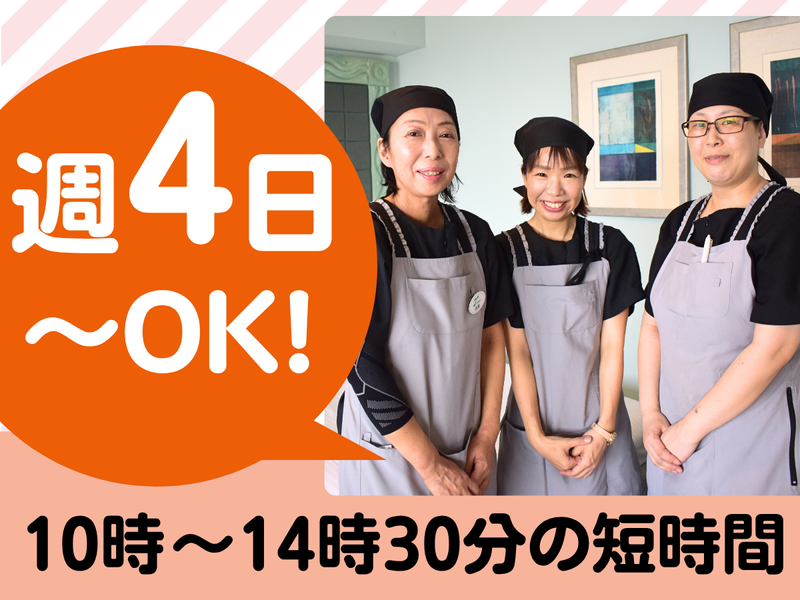 勤務時間詳細 10:00~14:30(休憩30分) ★夕飯の支度等にも間に合う! ★土日含む週4日程度入れる方歓迎!