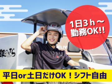 アピールメッセージ カンタン配達業務♪新人,未経験でも大歓迎!シフト提出は1週間毎★短時間勤務ok◎ 1日3H~OK♪安心の研修制度!授業とサークルの間にサクッと/お休みの日はガッツリなど働き方選べます◎海鮮丼など賄い有!