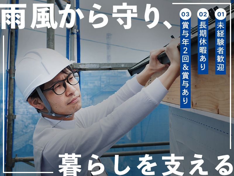 仕事内容 <採用残りわずか!> ////////////// 未経験から始める板金工 賞与年2回!昇給もあり! ////////////// <Point> ✅賞与年2回&昇給あり! ✅資格取得費用は会社が全額負担! ✅残業月10h未満 《 建物を守る!建築板金のお仕事 》 〇住宅や工場の屋根の施工・修理 〇金属製の外壁の取り付け・修繕 〇雨水を流す「雨樋」の交換作業 《未経験でもOK!》 〇先輩と2人1組で作業開始 〇道具の名前から丁寧に指導します! 〇3~5年で一人前に成長可能
