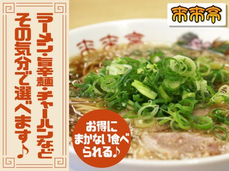 資格 ★未経験者大歓迎!飲食店経験は一切不要 ★経験者の方ももちろん歓迎! ★主婦(主夫)歓迎 ★WワークOK! ★学歴不問 ★扶養内勤務OK ★中高年の方も活躍中! ★ブランクのある方も歓迎 ★アルバイトから正社員を目指したい方も大歓迎 【来来亭の三大原則】 「大きな声での挨拶」 「ニコニコ笑顔で対応」 「キビキビとした行動」 この3つを大切にし、お客様に「また来たい!」と思ってもらえるお店作りを目指しています。 「大きな声や笑顔、キビキビした動きに自信がない…」という方も安心してください。 最初は誰でもできません!先輩がしっかりサポートしますので、安心してスタートできます。 【スタッフの前職例】 コンビニ、カフェ、居酒屋、レストラン、工場、軽作業など、さまざまな前職を持ったスタッフが活躍中! 「家が近い」「ラーメンが好き」「高収入だから」など、動機は何でもOK! 【特別なスキルは一切不要】 ラーメン屋での経験や知識は全く必要ありません。 「稼ぎたい」「飲食店で働いてみたい」など、まずはやってみたいという気持ちがあれば大歓迎!