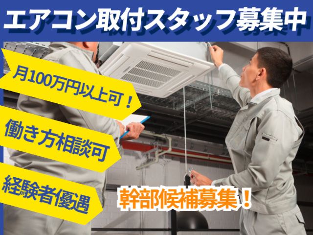 仕事内容 〇幹部候補!エアコン取付スタッフ エアコン取付の経験がある方、今の環境からのステップアップを考えている方は必見! 単なる「作業スタッフ」に留まらず、 将来の当社を担う【幹部候補】としてお迎えします。 実力次第で早期に現場責任者やマネジメント業務をお任せしたいと考えています。 即戦力としてだけではなく、当社の 幹部を目指す事ができるお仕事です. 【主な業務】 一般住宅やオフィス・商業施設などでの エアコン設置・取付工事(電気工事)を担当 <主な現場> 埼玉県・東京都近郊の近場が中心。 最初は、事務所に集合して現場へ。 経験を積んで、仕事を任せられるように なってきたら「直行直帰」も可能です! 【経験や資格を活かそう!】 現場作業員として働いていた方や 同業で働いていた方など即戦力 として活躍していただける方は大歓迎です! エアコン工事の経験を当社で活かしませんか? 第二種電気工事士の資格をお持ちの方は さらに優遇致します 【お仕事のポイント】 ・稼働分前払い ・日払い可 ※応相談 ・昇給随時 ・週休制でシッカリ休める ※週休2日も可 【月収100万円以上を目指そう!】 これまでの経験やスキルを考慮し、最適な現場からお任せします。 独立希望の方もお待ちしております! 1人で現場を完結できるスキルがあれば、歩合給を大幅に還元! 「とにかく稼ぎたいから休みを少なくして現場を回る」 「効率よく高単価な現場をこなす」など、 あなたのスタイルで高収入を実現できます 実際に月収100万円プレイヤーを目指せる環境が整っています。 頑張った分しっかり正当に評価される環境です。 不安なく応募、そして入社いただきたいので まずはお気軽に何でもご相談くださいね! 【資格取得でステップアップ可能!】 電気工事士の資格を取得することも可能! ステップアップ!収入もUP! 【メリハリ付けて働こう!】 お休みはシフト制(週休制)ですが、 ご家庭の事情などもしっかり考慮。 ▼例えば・・・ ・子どもの授業参観で平日休み ・通院付き添いで土日休み などお好きな日に休みが取れます。 皆様からご応募を心よりお待ちしております。 ーjoytech採用係ー TEL:090-5419-6026 採用サイト:https://entori.jp/joytech