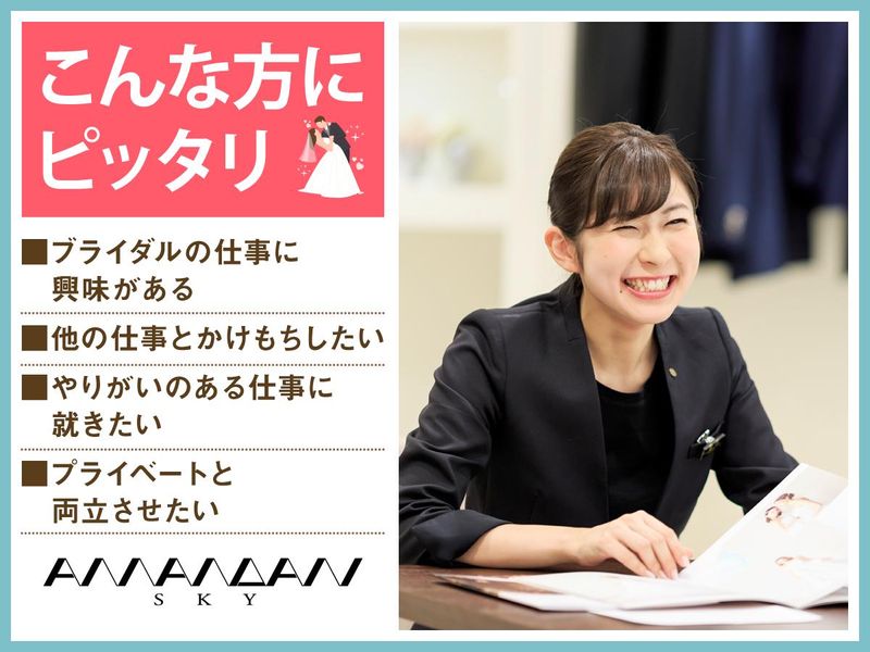 求めている人材 ✅未経験者歓迎 ✅主夫・主婦歓迎 ■週3日勤務可能な方 ■PC入力ができる方 ※ExcelやWordは詳しくない… という方でも問題ありません! 事務業務メインではありますが、 お客様と接する機会も多いため、 お人柄重視の採用です* ブライダルスタッフや 事務スタッフとしてのご経験は不問ですが 接客業や受付、一般事務、営業事務などの ご経験がある方は活かしていただけます。 もちろん、未経験の方もご安心ください◎ 必要なスキルは全て研修でお教えします♪ 未経験からでも問題なくスタートできる環境です◎ \こんな方もぜひ/ ■ホスピタリティを活かしたい方 ■ウェディングやブライダルへの憧れ・興味がある方 ■やりがいのある仕事に就きたい ■感謝される仕事をしたい ■笑顔が多く安心して働ける職場を探している ■土日メインで働きたい方 ■Wワークで勤務したい ■車通勤可能な方優遇 ■土日祝勤務に入れる方優遇 ■フルタイム勤務できる方優遇 ◇無資格歓迎 ◇Wワーク歓迎 ◇ブランク歓迎 ◇資格不問 ◇学歴不問 ◇経験不問 ◇扶養内勤務歓迎 ◇フリーター歓迎
