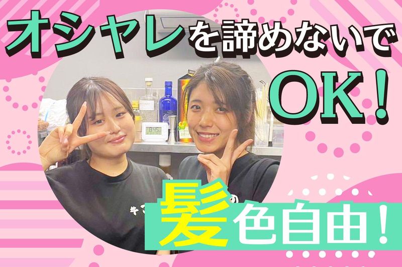 求めている人材 「髪色そのままで働ける」 「人間関係が優しくて居心地いい」など 女子スタッフからの嬉しい声が続出中♪ ___♪こんなあなたにぴったり♪___ ✿おしゃれを楽しみながら働きたい方 ┗髪型・髪色自由♪ ✿学校や推し活と両立したい方 ✿友達と一緒にバイトデビューしたい方 ✿給与も人間関係も妥協したくない方 ✿美味しいまかないが食べたい方 ✨学生歓迎&フリーター歓迎 ✨主婦(夫)さんやWワークも応援 ✨接客未経験OK!経験者は尚良し ……………………………………………… ⭐あなたのペースで無理なくバイト⭐ *勤務時間の融通がきく ┗学校や推し活とも両立しやすい! *週1日〜OK!推しのライブ前も、 テスト期間も、ぜんぶ相談OK♪ *終電前にはしっかり帰れる! 学生さん・一人暮らし女子も安心♪ 「学校帰りにちょっとだけ」 「Wワークのスキマ時間に」 …そんな働き方も全部OK! “自分らしく無理なく続けられる” そんなバイトが、ここにあります◎ 性別の条件と理由:女性歓迎(ポジティブアクション)