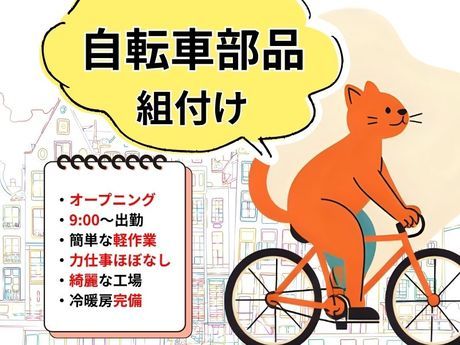 【新工場OPEN♪で日勤・軽作業】ゆっくり9時出勤/自転車の部品組付け