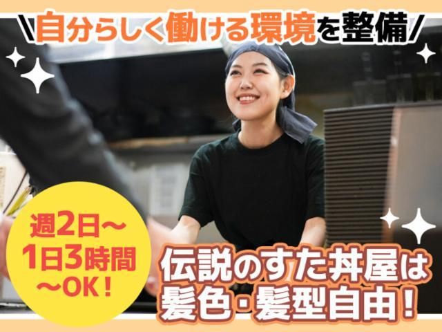 仕事情報 ● 仕事内容 簡単な調理補助・軽作業をお願いします! ★食材の仕込みや簡単なサイドメニューの調理など! ★洗い物も食洗器で楽ちん♪ まずは簡単な作業から!自分のペースで覚えていきましょう♪ 手厚い待遇が自慢 食事補助付きで、通常メニューから好きなものが選べます! 稼ぎながらお腹も満足◎すた丼屋はヘルプが出た店舗へ出勤する ケースがありますがその際には手当として時給がUPします! 近隣に多くの店舗があるので、ヘルプを上手く使って がっつり稼ぐこともできますよ! 伝説のすた丼屋で働く魅力 スタッフ同士の仲が良くて居心地◎ シフトのワガママに応えるから、働きやすさ抜群★ 髪型・髪色も自由で「自分らしく」働けますっ♪♪ 店長や社員はとってもフレンドリー☆初バイトでも心配なし!! 疑問や不安に思ったことは何でもスグに聞けちゃう環境です♪ 伝説のすた丼屋で働く魅力 交通費支給・給与前払い制度・昇給のチャンスもあり! 短い時間でも高時給で効率よく働けるチャンスあり!! 昇給例・・・ ・全部でランクが7つあり、20円~最大350円まで時給UP! ・お友達紹介⇒入社したら謝礼金お支払い!(規定あり) 働くメリット ★ヘルプに行ってくれたら、ヘルプ先での時給は50円UP!! ★お給料は1分単位で支給!損させません! ★友達同士の応募がOK!お友達を紹介したら謝礼お支払い! ★シフト提出や連絡網はスマホでらくらく! ★髪型・髪色は自由なのであなたらしく!