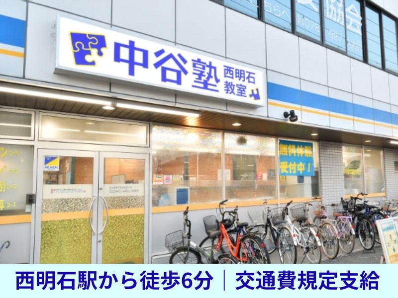 仕事内容 \ お久しぶりのスタッフ募集!定着率◎ / ★自分の受験経験や得意教科を活かしたい ★就活や就職で役立つスキルや経験身につけたい! ★教育業界に将来携わりたい! ★勉強への意欲をあげるお手伝いがしたい! 1つでも当てはまる方是非!塾講師として一緒に働きませんか? ⭐高校生の理数系科目教えられる方大歓迎! ⭐生徒最大5人×120分の個別指導コースなら1コマ「「3432円」」!! ※時給1716円!!! ┈┈┈┈┈┈┈┈┈┈┈┈┈┈┈ ▼具体的にお任せしたいのは… ┈┈┈┈┈┈┈┈┈┈┈┈┈┈┈ ✅学校授業で習った内容の復習 ✅苦手な教科の克服・対策 ✅定期テスト対策 など。 生徒さんが学校授業についていけるように、 苦手な分野・単元を増やさないように 授業サポーターとして教えてください。 <教えるコツ> 勉強を教えるというよりも、 「塾へ行くのが楽しみ!」と子ども達が笑顔になる 学びの場所・雰囲気づくりを一緒にしましょう♪ 「教えられるか不安…」という方も、雰囲気を見ながら 自分らしく子ども達のサポートをしてもらえれば大丈夫です! ┈┈┈┈┈┈┈┈┈┈┈┈┈┈┈ 授業について ┈┈┈┈┈┈┈┈┈┈┈┈┈┈┈ ✅先生1人:生徒最大5人(120分) or 先生1人:生徒1人(80分) どちらの授業スタイルでするか選べます ⭐詳細は、掲載画像を参考にしてください! ✅教える生徒を、小学生・中学生・高校生選べます ✅教える教科は、正直自由です! 子ども達の日々の質問に対して答えられそうな 教科でおまかせしたいと思っています。 ⇒授業スタイル × 対象生徒 によって時給が変わります。 ┈┈┈┈┈┈┈┈┈┈┈┈┈┈┈ ▼授業準備として・・・ ┈┈┈┈┈┈┈┈┈┈┈┈┈┈┈ ●教える内容の復習(授業進捗・受験勉強に合わせた内容) ●1コマ80~120分の、教え方時間配分を考える ┗「Aくんには最初15分、復習問題解いてもらって Bさんには宿題の採点から、分からないところを聞いてみよう!」 などを想定準備して頂いてます。 ⭐1授業時間に対して、15分ぐらいで準備出来ています◎ ⭐各コマ(授業)で、質問を受けて解き方指導などをしていきます。 家庭教師アルバイトのように教えられます。 <指導科目> ●小学生・中学生 国語・算数(数学)・英語・理科・社会 ●高校生 古文・漢文・現代文・文系数学・理系数学・英語・物理・化学・生物 世界史・日本史・政治経済・公民・地理・小論文 ┈┈┈┈┈┈┈┈┈┈┈┈┈┈┈ 中谷塾について ┈┈┈┈┈┈┈┈┈┈┈┈┈┈┈ 西明石教室・大久保教室を開講しております。 人気の塾で、各教室には100名程度の生徒が在籍。 西明石教室では、学生アルバイト10名が活躍中! 大学生スタッフも多く、楽しく学びながら成長しています。 ベテラン講師陣のサポート体制も充実しております♪ HPに先生のコメントや塾紹介・塾長が勉強を教えている動画なども 載っているので、良かったらチェックしてみて下さい! 【大学生先生の嬉しかったエピソード】 テスト前で、塾に来た生徒が 「先生、次の土日も来るよね?先生が来る時間に行きたい!」と言われた時は、 心の中で思わず「嬉しい!求めてくれてる!!」と感じました。 また、自分が教えた生徒が第一志望校に合格した時、 その喜びは言葉にできないほど感動しました。 「先生と同じ大学行こうかな~」という可愛い生徒もいます。 生徒の成長に立ち会えることが、何よりのやりがいです! 塾のアルバイトは高時給ですし、夕方からの勤務なので 土日の昼はカフェで働いたりもできるのもGood◎