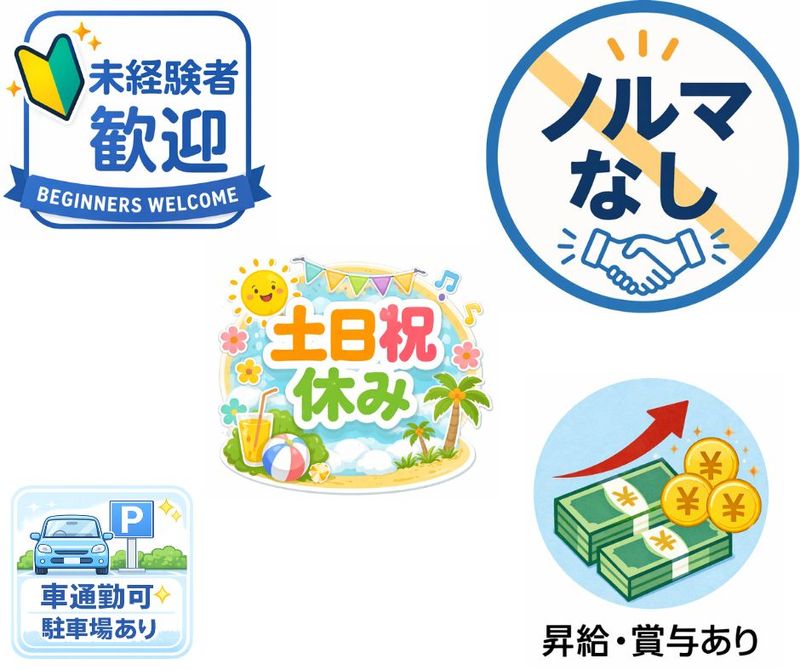 仕事内容 【不動産営業(売買・賃貸)】 ☆未経験OK ☆ノルマなし 不動産の売買・賃貸仲介業務をお任せします 【売買仲介】 ・お問い合わせ対応(反響営業) ・希望条件のヒアリング ・物件のご提案・ご案内 ・契約手続き、資料作成 ・物件探し ・不動産所有者様への売却提案・有効活用のご提案 【賃貸仲介】 ・お部屋探しのお客様対応 ・ライフスタイルに合わせた物件提案 ・物件のご案内 ・契約手続き、資料作成 【働きやすさのポイント】 ★未経験OK!イチから丁寧に指導します ★ノルマなし!無理な営業はありません ★月ごとの目標はありますが プレッシャーなく働けます お客様一人ひとりにしっかり向き合い、 “寄り添う接客”を大切にできる環境です 中途入社や異業種から転職したスタッフも 多数活躍中 基礎からしっかり学べる環境なので 安心してスタートできます ※お仕事番号/Cfk2907-003