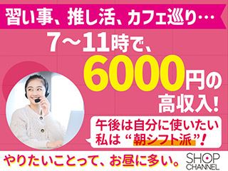 早朝7時から11時勤務 受電のみ ショップチャンネルコールセンター