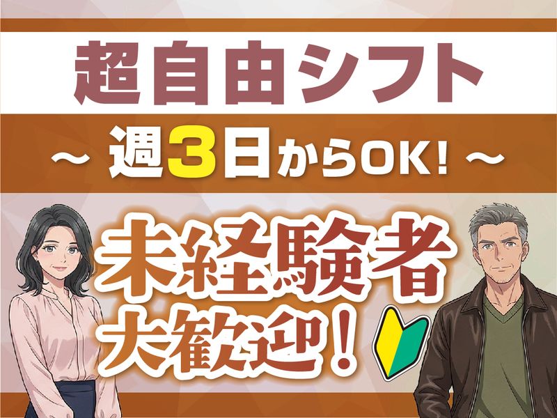 勤務時間・曜日: ①8:00~17:00 ②8:00~19:00 ③10:00~19:00 ★週3日以上勤務 ※がっつり週5日も歓迎♪