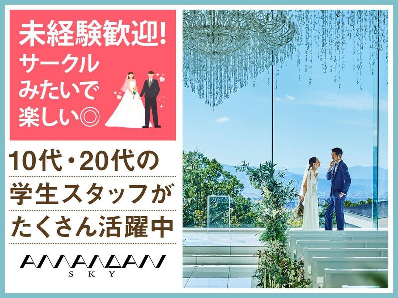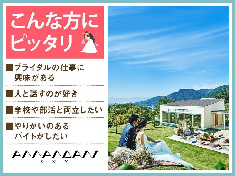 仕事内容 \大学生が多数活躍中!/ 📌週1日~1日4時間~OKで融通◎ 📌無料送迎アリ♪ 📌絶品のまかないアリ(^^) 📌同世代が多くて安心◎ アマンダンスカイは 長野市街を眺望する 大自然に囲まれた結婚式場 ウェディングのお手伝いをするお仕事です◎ ―――――――――――――――― 電話での応募や問い合わせだけも大歓迎! ⇒【TEL:026-238-2888】まで お気軽にお電話ください♪♪ ―――――――――――――――― <主なお仕事内容は…> 次のお仕事をお任せ! ■会場の準備 ■お客様の上着や荷物のお預かり ■お席のご案内 ■結婚式のお料理・ドリンク提供 ※キッチン業務はありません◎ まかないは本格料理人たちが 美味しい食材を使って作ってくれます♪♪ 進路決定済みの高校3年生もOK! 現在、大学生12名が在籍中! 信州大学や清泉女学院大学の子も多いです◎ お友達同士の応募も大歓迎! やりがいのあるバイトを探している方に ピッタリです! 敷居が高いイメージがあるかもしれませんが みんなで協力しながら準備して… 毎日、文化祭みたいな雰囲気なんです♪ 素敵な仲間に出会える そんな場所になると思います◎ ついでに… 社会で活躍するためのマナーも学べますし、 実は就活に役立つのもうれしいポイント! 最初はホール業務からスタート! ゆくゆくは式全体の運営やチームをまとめる役割にも挑戦できます。 「テキパキ動ける」「リーダーシップを発揮したい」方にピッタリです! チームをまとめる経験が就活にも活かせます◎ ―――――――――――――――― 具体的な仕事の流れは? ―――――――――――――――― ▶STEP.1 ミーティング 披露宴の流れやお料理について スタッフ間で事前に確認して 式中にバタバタしないようにします◎ ▶▶STEP.2 披露宴会場の準備 お席に置く名札や ゲストの方に渡す引き出物を確認したり グラスを磨いたりして準備します。 ▶▶▶STEP.3 お客さまのお出迎え 荷物をお預かりし、 待合室でドリンクをお出しします! ▶▶▶▶STEP.4 ホール業務 お席にご案内し、順番にお料理や ドリンクを提供します◎ ―――――――――――――――― 未経験者歓迎! みんなで助け合う雰囲気です ―――――――――――――――― 最初は結婚式の見学からスタート! 見学後は本番じゃないところで、 同世代を集めて研修を実施。 飲食業やホールスタッフが 初めての子には、 お盆の持ち方から教えます!