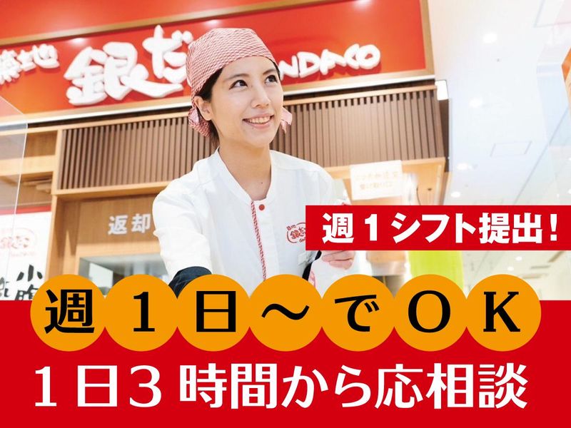 仕事内容 \バイトデビューにもちょうどいい!/ 【築地銀だこでの製造×販売バイト♪】 新浦安駅から徒歩1分★ 「築地銀だこ」イオン新浦安店から 新しい仲間を大募集! たこ焼きの製造と販売を行うお仕事です。 先輩スタッフや店長が隣で 丁寧にサポートするから、 アルバイト未経験でも、 飲食店で働いたことなくても安心! 最初は簡単な接客や盛り付けから始め、 少しずつ仕事の幅を広げていけるので、 「自分にできるか不安」という方でも 無理なく成長できるんです♪ 学生さんを中心に 幅広い年代のスタッフが活躍中! みんなでフォローしあいながら働く “あたたかい職場”です! お客様の「美味しそう!」「ありがとう」、 そして美味しい笑顔…全部がやりがいになるんですよ☆ ==================== ╭──────────────────╮ まずは食材準備や簡単な調理補助を ╰─────────v────────╯ 入社後は、食材の準備やトッピングなど 簡単な調理補助を担当! タコや天かす、粉などの材料を準備し、 生地を作るなどの作業が中心です。 メニューは約6種類と覚えやすく、 作業手順も決まっているため、 未経験の方でも無理なく覚えることが できますし、分からないことがあれば すぐに周りのスタッフがフォローする から安心して挑戦してくださいね☆ ╭──────────────────╮ 最新の半自動機械でたこ焼き作りを習得 ╰────────v─────────╯ お店では半自動の調理機械を導入しており、 たこ焼きを回す作業も機械がサポート! 職人のような技術がなくても、もちろん大丈夫♪ 基本の手順を覚えれば、未経験からでも 1ヶ月程度でたこ焼きを焼けるように なる方がほとんどです。 自分で焼いたたこ焼きを初めて お客様に提供…ちょっぴり嬉しい瞬間です。 ╭─────────────────╮ 忙しい時間帯もチームで協力して対応 ╰────────v────────╯ ランチタイムや土日はお客様が多く、 行列ができることも。 最初は慌ててしまうかもしれませんが、 そんな時こそ先輩スタッフがフォローに 入るのでご安心を♪ チームで協力しながらの対応だから、 一人で抱え込むことはありません。 スタッフ同士もとっても仲が良く、 困ったときは自然と助け合える 頼れる存在がいっぱいです☆ ╭─────────────────╮ 店長の優しさが広がる働きやすい職場 ╰────────v────────╯ 店長はとっても穏やか! ミスをしても責めるのではなく 「次はこうしてみよう」と 実用的なアドバイスをしてくれるんです。 その雰囲気がスタッフにも広がり、 自然と働きやすい環境ができています。 グループチャットでシフトを助け合ったり、 スタッフ同士で仲良く働いているのも 特徴のひとつ。 安心して長く働けるお店で、あなたをお待ちしています★