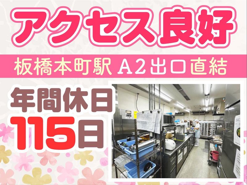 仕事内容 ※要調理師資格 *・*・*・*・*・*・*・* ブランク・業界未経験者大歓迎! 週2日~勤務OK *・*・*・*・*・*・*・* 【求人のポイント】 ◎週2日~、曜日応相談 ◎医療費減免制度あり(月3万円まで) ◎患者さんとしっかり向きあえる環境 【仕事内容】 *調理業務 *調理器具や調理場の清掃 *⾷器洗い *配膳 など 院内で患者様に提供する⾷事をお任せする 調理師を募集いたします! 調理を通じて、患者様の健康維持と 早期回復をサポートする役割です。 【入社後は】 仕事の流れは先輩職員が しっかり指導いたします。 業界経験がない方もご安心ください。 病院・学校・介護施設などでの 調理師勤務経験があれば活かせます。 【1日の流れ】※一例 9時 出勤 11時30分まで 昼食調理 12時頃から 休憩(1時間) 13時から 洗浄作業 14時30分から 夕食の盛り付け 17時30分から 片付け 18時 退勤 【当院の特徴】 都営三田線「板橋本町駅」直結の 高度な医療センターを備えた内科です。 病床数が少ないため、職員は少数精鋭。 入院患者様は高齢者の方が中心で、 慢性期と急性期の中間に位置する方が多いです。