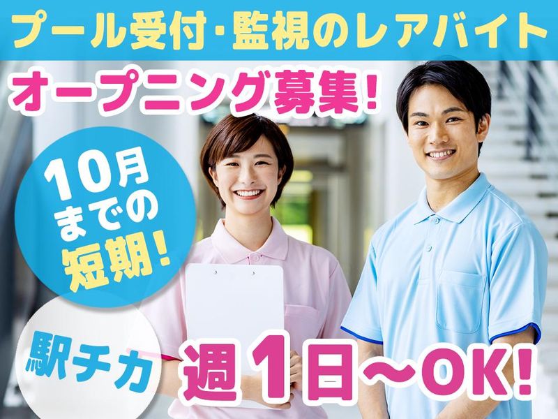仕事内容 芝浜小学校屋内プールの 受付・監視スタッフを募集! ――――――――――――――――― ★5月下旬~10月中旬までの期間限定! ★20名の大量募集! ★週1日・4時間~OK! ――――――――――――――――― 《お仕事詳細》 ▽受付のお仕事 ・施設のご案内 ・お客様のご対応 ・各種手続きのご案内 ・電話対応 ▽監視のお仕事 ・プール内、プールサイドの監視 ・水質確認 ・更衣室等の清掃 ・備品点検 ・忘れ物チェック ・注意喚起(危険な行為を見つけた場合) #新着求人 #アルバイト・パート