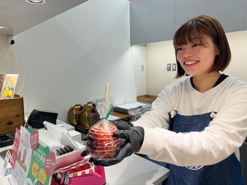 仕事内容 林檎堂イオンモール熊本店では、 「接客が好き!」「人を笑顔にしたい!」という想いを持った方を大募集! 作業をこなすだけではなく、お客様に喜んでもらうことを楽しめる方を歓迎します。 未経験の方も大丈夫!先輩スタッフが丁寧にサポートしますので、安心して始められます。 【お仕事内容】 ・りんご飴のカット ・レジでの接客 ・お客様へのご案内 など 難しい作業はありませんが、「お客様の笑顔を引き出す」ことを大切にしています。 慣れてくれば、時間帯によっては一人で店舗を任されることもあります! 【働きやすさのポイント】 ・1日4時間からOK! ・シフトは半月ごとの提出!学業やプライベートと無理なく両立可能! ・高校生や学生スタッフも多数在籍中! ・にぎやかで明るい職場です! 【こんな方に向いています】 ・人と話すことが好きな方 ・明るく元気に「いらっしゃいませ!」が言える方 ・チームで協力して働くのが好きな方 ・林檎やスイーツに興味がある方 【林檎堂について】 林檎堂は「林檎を通じて世界を笑顔に」という理念のもと、 全国の店舗でりんご飴を販売している専門店です。 その時期に一番おいしい林檎を使い、定番8種類と季節限定のフレーバーを提供しています。 見た目のかわいさとおいしさ、そしてホスピタリティを大切にした接客で、 お客様に「来てよかった!」と思っていただけるお店を目指しています。 【身だしなみについて】 ・髪色自由(ビビッドな単色は不可、インナーカラーOK) ・ネイルOK(グローブ着用必須、爪の長さは5mm以内) ・ピアスOK(両耳2つまで。大きなフープや揺れるピアスは不可) ・清潔感があれば、おしゃれも楽しめる環境です! 「お客様を笑顔にしたい!」というあなたの気持ちを、林檎堂で活かしませんか? たくさんのご応募をお待ちしています!