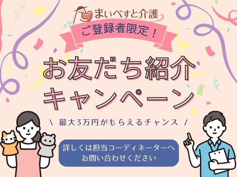 仕事内容 有料老人ホームでの介護スタッフを募集します! ◆仕事内容 ・食事・入浴・排泄などの身体介助 ・見守り・移動サポート・環境整備 ・レクリエーションの補助 ・タブレットでの介護記録入力(ICT導入済) ・他職種との連携・申し送り対応 ※接遇を大切にした、落ち着いた環境での個別ケアが中心です。 ※この求人は株式会社MEDILCYが取り扱う紹介求人です。
