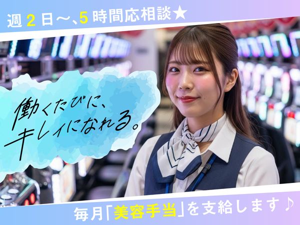 仕事内容 / 年始も休まず営業中! だから「今すぐ」働ける!! \ 「年明けから心機一転スタート」 「すぐに収入が欲しい」 ▼ ▼ ▼ そんな方、大歓迎です! 年始すぐの応募でも【即勤務&即収入】が可能! 心機一転のタイミングで稼ぎ始めませんか? 【【この求人のポイント!】】 *.。*.。*.。*.。*.。*.。*.。*.。*.。* ◆毎月貰える美容手当でオシャレしながら働ける☆彡 ◆業界未経験でも安心!先輩が優しくフォローします★ ◆高時給&日払い・週払いの相談OKですぐに稼げる♪ *.。*.。*.。*.。*.。*.。*.。*.。*.。* 【◆「美容手当が決め手!これが私の選択を後押ししました」(20代フリーター Aさん/女性)】 接客が大好きで、ふと目に留まったのが高時給のパチンコ店の求人。 時給の高さはもちろん、特に魅力を感じたのは「美容手当」が支給される点! 毎月のまつエク代が節約できるので、その分ネイルも始めようかなとワクワクしています☆ オシャレ好きな私にとって理想的な職場です! 【◆未経験から活躍中!パチンコ店でのホール・カウンター業務をお任せします。】 ・フロアでの接客やお客様のサポート ・景品交換などのカウンター業務 ・遊技台の拭き掃除 など ・20~30代スタッフ活躍中! ・簡単業務で未経験からでも安心♪ ・友達同士の応募OK! パチンコ店での店員・スタッフ、景品交換経験者も活躍中! ハローワークでお仕事をお探し中の方にもオススメです! 【◆髪型&ネイルも自由♪あなたらしく働ける!】 髪型・ネイル自由でオシャレしながら働ける! 自分らしさをだしつつお客様に快適な時間を提供♪ 【◆施設内での作業なので快適♪力を使う作業がほぼ無し!体への負担も少なく安心して働けますよ】 快適な室内業務で職場環境◎ 重たい玉やメダルの上げ下げといった力作業なし! 体に負担少なく働ける! 【◆この店舗の魅力】 おしゃれしながら働ける♪身だしなみ自由◎