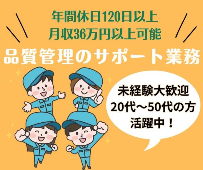 \月収36万円以上も可!年間休日120日以上/品質管理のサポート業務@筑西市下江連!20代~50代の男女活躍中!日払いOK!履歴書&来社不要のかんたんWEB面接OK!/(POT)/№T35