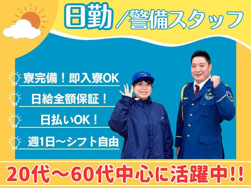 仕事内容 ⭐ テイシンは働きやすさに自信あり ⭐ ⸜⸜未経験の方も安心して働ける環境です⸝⸝  ̄ ̄ ̄ ̄ ̄ ̄ ̄ ̄ ̄ ̄ ̄ ̄ ̄ ̄ ̄ ̄ ✅日払い・現金手渡しOK! ✅早上がりでも日給全額保証 ✅週1日~OK! ✅寮完備!即入居可! ✅昼食付♪3日間の事前研修(1日7時間)あり◎ ✅履歴書不要!飛び込み面接OK! ✅気になった方はお電話ください❕❕ TEL▶03-5913-9788 ◆―――――――◇◆◇―――――――◆ <✨履歴書・面接不要の簡易選考あり✨> 応募はとってもカンタン! 携帯に届く専用フォームに 答えるだけで完了♪ 内容を確認後、 担当者からすぐご連絡いたします! ◆―――――――◇◆◇―――――――◆ 日勤・警備スタッフ大募集❗❗ (。・ω・)尸━━━━━━━━━━━━━⭐ 工事現場などでの、通行人や車の 誘導・案内をお願いします。 住宅街の現場が中心で交通量も少ないため、 交通誘導が初めての方も安心して働けます。 ※その他にも施設警備の案件や 土日祝はイベント警備の案件も多数! ★代表的な1日の流れ(例)★ 09:00 集合して車で現場に移動 09:30 担当エリアで警備開始 11:00 15分休憩 13:00 昼休憩(1時間) 16:00 15分休憩 18:00 車で集合場所に移動・解散 ※直行直帰OK ⛅暑い季節も無理はさせません⛅ 隊員全員が体に無理なく働けるよう、 こまめな休憩・水分補給はもちろん、 声かけや体調チェックなど、日々の コミュニケーションを大切にしています◎ ━━━━━━━━━━━━━━━━━━━ ⭐"楽しく働くこと"がモットー⭐ 仕事や収入、プライベートなことまで 何でも相談できるあたたかい職場環境♫ わからないことはスグに相談できます❕ 気さくで優しい先輩たちが歓迎します。 ⭐日払い現金手渡しOK◎⭐ 日払いOK!現金手渡しOKなので、 急な出費にもバッチリ対応! 頑張った分の報酬がその場で受け取れます♪ ⭐事前研修を経て安心デビュー⭐ 初日からいきなり現場に出る! なんてことは絶対にありません。 現場に出る前に丁寧な研修があるので、 初めての方も安心してスタートできます♪ ⭐まずはお気軽にお電話ください⭐ お問合せだけもOK!☎03-5913-9788まで お電話お待ちしています♫ ╭━━━━━━━━━━━╮ ⭐東京都内に現場多数あり⭐ ╰━━━━━━━━━━━╯ 東京都内に100ヶ所以上の現場があります! 「家の近くで働きたい!」 「直行直帰で働きたい!」 など、お気軽にご相談下さい♪