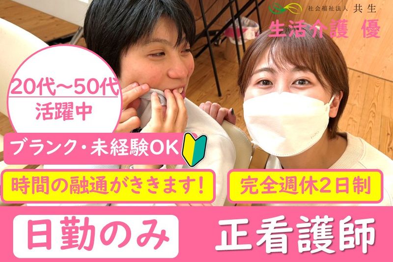 【応募資格】 ●正看護師 ●皆さん大歓迎です ・現場経験からブランクがある方 ・介護施設や障害福祉施設での経験がない方 ●普通自動車運転免許(AT限定可) 【メリット】 #ブランクOK #40代も応募可 #50代も応募可 #車通勤OK #交通費支給 #残業なし #経験者歓迎 #社会保険完備 #昇給あり #賞与あり #主婦・主夫歓迎 #新卒歓迎 #第二新卒歓迎 #未経験者歓迎 #有資格者歓迎 #学歴不問 #資格取得支援あり #育休制度あり #育児サポートあり #60代も応募可 #バイク通勤OK #転勤なし #制服貸与