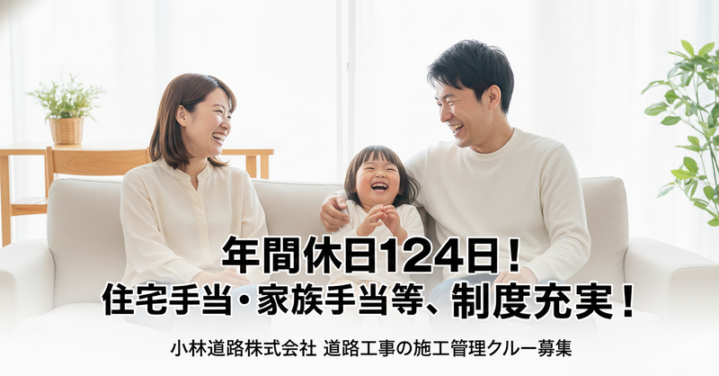年間休124日/手当充実!1級土木/月3万・2級土木/月1万