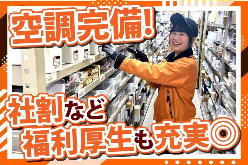 仕事内容 <軽作業スタッフを積極増員募集中!!!> 「子供の大学費用に備えて働きたい」 「久しぶりにお仕事復帰がしたい」 「家庭と両立しながら自分時間を作りたい」 という主婦さんが多数活躍中です! 少しでもご興味がある方はお気軽にご応募を! 【お仕事内容について】 ハンディと呼ばれる片手で持ち運べる スマートフォン型端末を使って作業します! 工事現場で使用するネジや工具、 オフィスで使用する文具用品や事務用雑貨、 清掃用品などのピッキング、入出荷、 検品などの軽作業をお任せします! 【Q1:機械操作が苦手だけど大丈夫?】 簡単操作なのでスマホなどを 触ったことがある方なら 1日で大体の操作は覚える事が出来ますよ! ハンディでピッ!と 商品を読み込んでピッキングをします。 お買い物感覚でセルフレジに 商品を読み込ませるイメージに近いです! 慣れるまでは先輩スタッフのサポートもあり! 困ったことがあればスグ質問できますよ。 【Q2:どんな場所で働くの?】 空調の効いたキレイな倉庫内で働けます! 休憩室も完備!お手頃価格で 販売されている自動販売機や、 お菓子もあり休憩時間も快適です。 事前注文で格安お弁当を購入することも可能! 各フロアにウォーターサーバーを 完備しているので、水分補給もばっちり! 「家よりもしっかり休憩できる」 という主婦さんもいらっしゃいますよ笑 【Q3:ずっと同じ仕事は飽きますか?】 基本一通りの業務に慣れたら 1人で作業は行います。 倉庫内で場所を移動しながら ピッキング作業をしたり、 入出荷検品の作業を行っていただきます。 多くの在庫を扱う物流センターなので、 日々様々な商品を扱いながら 楽しくお仕事ができます! ダイエット気分で働くスタッフもいます。 同年代のスタッフもいるので時々、 世間話をすることもあります。 職場で友達ができたという方もいますよ。